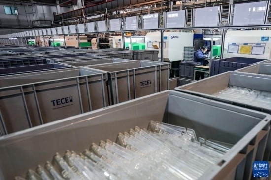 工人在位于太倉(cāng)市高新區(qū)的帝希潔具系統(tǒng)(蘇州)有限公司生產(chǎn)車間內(nèi)進(jìn)行加工作業(yè)(3月16日攝)。