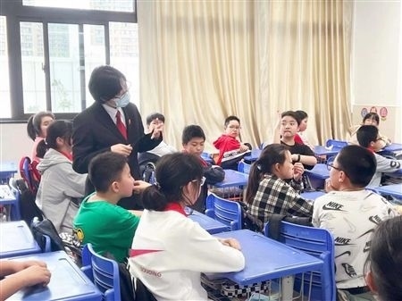 溧陽法院緊跟時代發(fā)展步伐,將法治宣傳教育與“雙減”政策下的課后延時服務(wù)相結(jié)合,創(chuàng)新打造“延時‘法’課堂 護航‘他’成長”特色校園普法品牌,獲得了學生喜歡、家長滿意和老師認可?!胺ü倮蠋煛眰兠恐芤淮巫哌M延時課堂,2022年已累計授課180余節(jié),受眾師生超9000人次。