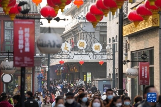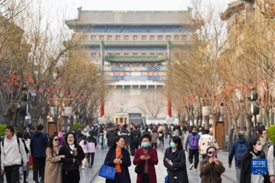 當(dāng)日,北京前門大街商圈游人如織,眾多市民游客在這里參觀游覽。