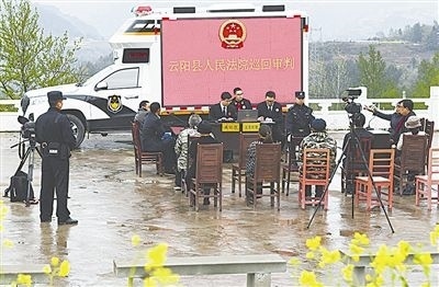 圖①:巡回審判車開(kāi)向坪東村。