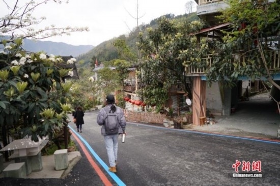 游客漫步在石椅村。中新網(wǎng)記者 劉湃 攝