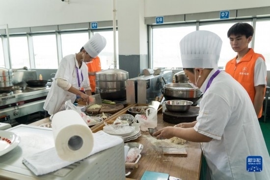 4月12日,在四川省綿陽市公共實訓(xùn)基地,參加中式面點項目的選手正在準(zhǔn)備食材。
