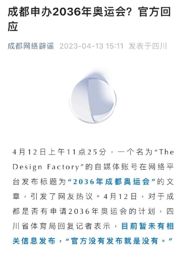 ·官方回應成都申辦2036年奧運會:官網未發(fā)布就是沒有。