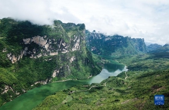 貴州省北盤江大峽谷國(guó)家濕地公園風(fēng)貌(2018年8月7日攝,無(wú)人機(jī)照片)。