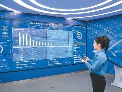 2月24日,在山東省東營經(jīng)濟(jì)技術(shù)開發(fā)區(qū)的東營工業(yè)互聯(lián)網(wǎng)創(chuàng)新中心,碳排放管理員通過碳達(dá)峰大數(shù)據(jù)平臺,查看和展示開發(fā)區(qū)企業(yè)實(shí)時(shí)耗能情況。周廣學(xué)攝(人民視覺)