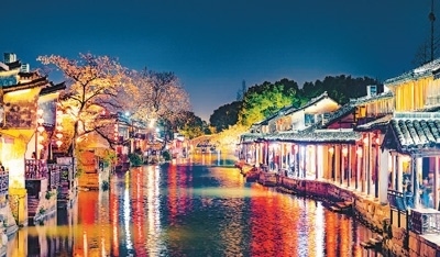 浙江省嘉興市嘉善縣西塘古鎮(zhèn)近年來加快推進(jìn)“微改造、精提升”,助推古鎮(zhèn)夜經(jīng)濟(jì)發(fā)展。圖為古鎮(zhèn)夜景。袁新宇攝(人民視覺)