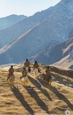 圖④在昆侖山腹地,新疆生產(chǎn)建設(shè)兵團第三師圖木舒克市葉城二牧場三連職工騎著牦牛行進在巡邊路上。