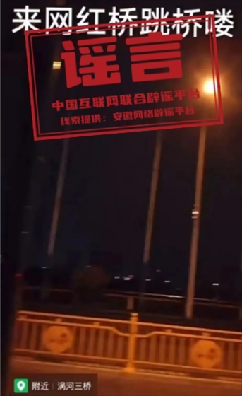 真相:近日,某網(wǎng)民發(fā)布以安徽蚌埠懷遠(yuǎn)渦河三橋為背景、配有“來網(wǎng)紅橋跳橋嘍”文字的視頻,并在評論區(qū)發(fā)布“昨晚上12點又一個跳橋的”等言論。經(jīng)當(dāng)?shù)鼐W(wǎng)安和公安核查、求證,近日懷遠(yuǎn)渦河三橋并未發(fā)生過跳橋事件,該信息確系謠言。視頻發(fā)布人梁某新為尋求刺激、博取流量,故意捏造虛假信息并在抖音平臺上傳播。屬地公安機關(guān)已對梁某新予以行政拘留5日處罰,其發(fā)布謠言的抖音賬號被依法注銷。(來源:“公安部網(wǎng)安局”微信公眾號、安徽網(wǎng)絡(luò)辟謠平臺)