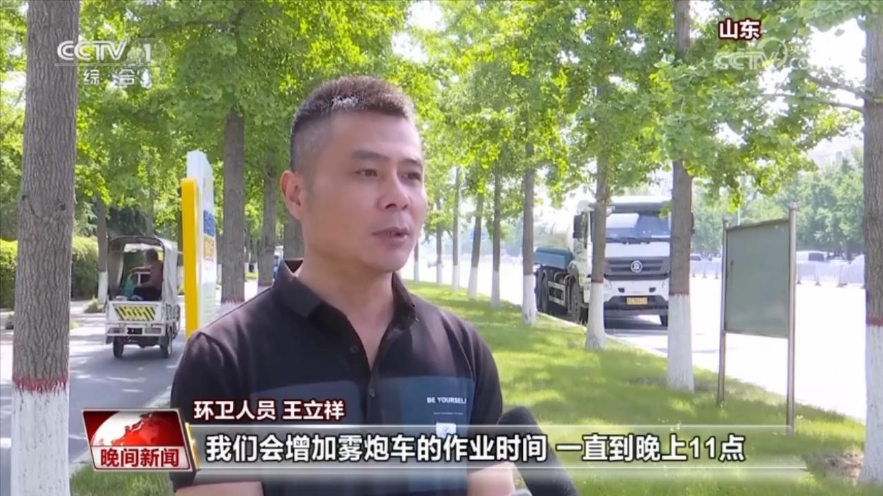 環(huán)衛(wèi)人員 王立祥:如果氣溫連續(xù)升高的話,我們會(huì)增加霧炮車(chē)的作業(yè)時(shí)間,一直到晚上11點(diǎn)。