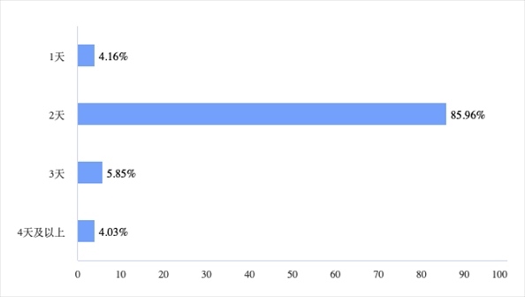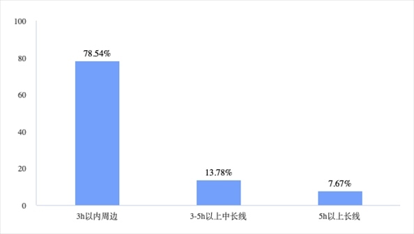 在出游時(shí)間和距離方面,短途游是大部分“特種兵旅游”人群的選擇。第一財(cái)經(jīng)調(diào)查結(jié)果顯示,86.09%的受訪者選擇周五晚上出發(fā),78.54%的受訪者選擇3小時(shí)路程的周邊游目的地,85.96%的受訪者選擇2天游程時(shí)間。