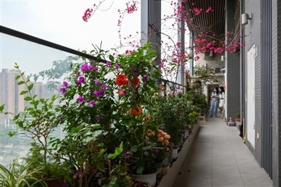 這棟“三角梅大樓”一共有32層(躍層),兩個(gè)單元,每層8戶,一共240戶人家。三角梅種植在每一層的公共空間長(zhǎng)廊上,每家每戶前都有三角梅種植點(diǎn)。久而久之,每家每戶也在三角梅的基礎(chǔ)上,按照個(gè)人愛(ài)好興趣種植了更多的綠植、瓜果、蔬菜等,成為小區(qū)一景。