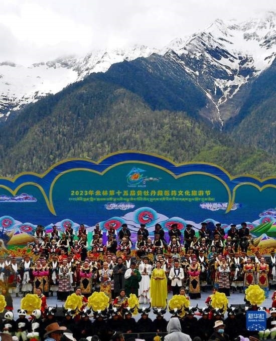 5月28日拍攝的米林市第十五屆黃牡丹藏醫(yī)藥文化旅游節(jié)開(kāi)幕式現(xiàn)場(chǎng)。