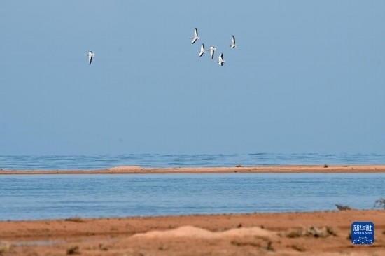 一群斑頭雁在阿爾金山國(guó)家級(jí)自然保護(hù)區(qū)飛翔(5月23日攝)。
