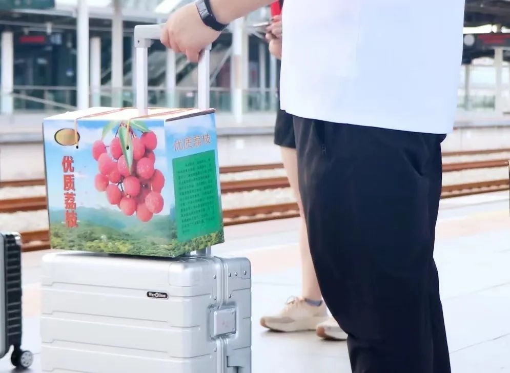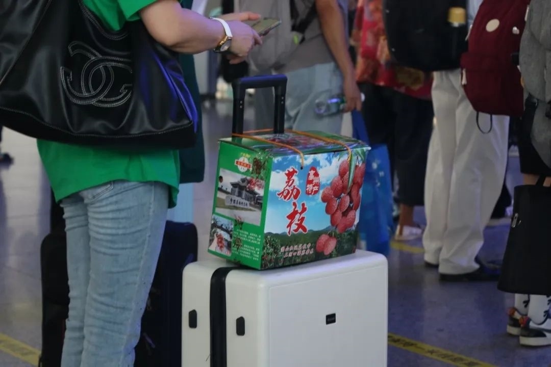 “我們會提前留足票源、增加運力、增設安檢口,方便旅客快速進站。安檢口提前備好透明膠帶,提供給攜帶荔枝的旅客加固包裝使用?!泵菊鹃L陳桓介紹。