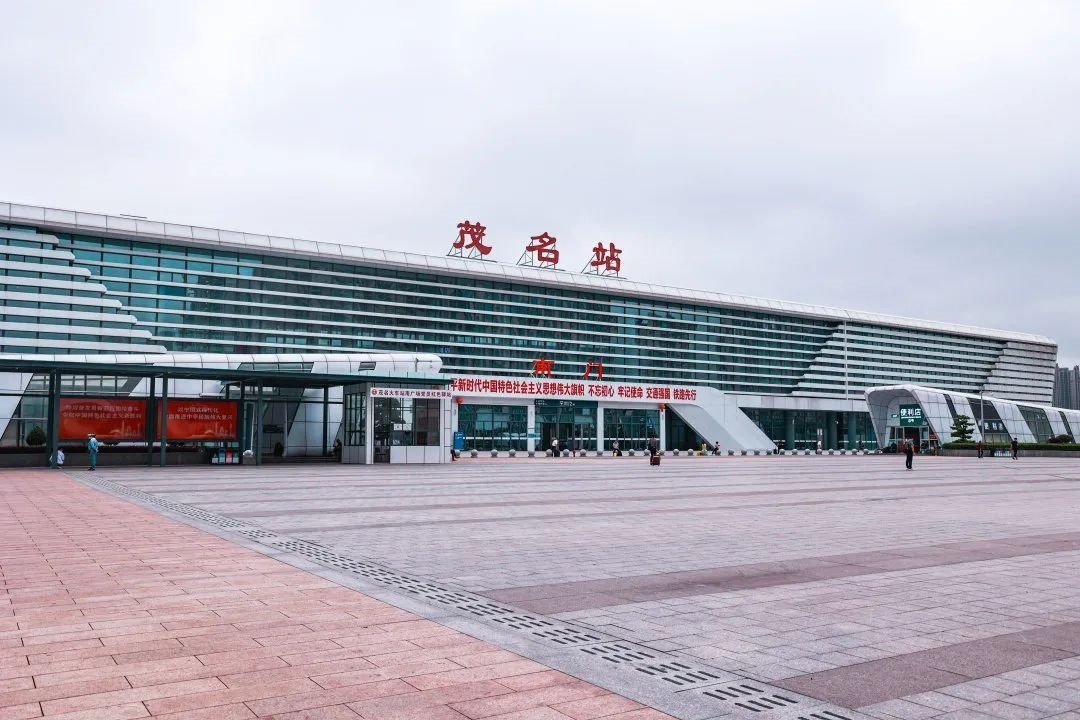 茂名站位于江湛鐵路上,是一個運營城際列車和普速鐵路的混合車站。廣州南至茂名的城際列車日常開行45對,周末增加至52對,將茂名到廣州的旅行時間縮短至2小時左右,十分方便。