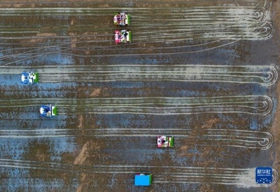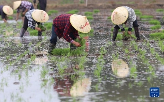 當(dāng)日,江蘇省淮安市洪澤區(qū)岔河鎮(zhèn)舉行第八屆禾采插秧節(jié)活動,村民和游客在稻田里體驗(yàn)農(nóng)耕樂趣,感受田園生活。