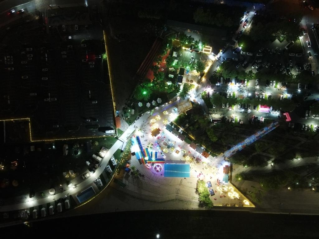 天津市中天煋河村房車露營公園夜景(無人機(jī)照片,4月30日攝)。新華社發(fā)