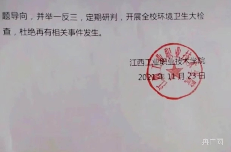 情況通報還提到,南昌市高新區(qū)市場監(jiān)督管理局接到情況報告后,第一時間派出執(zhí)法人員到江西工業(yè)職業(yè)技術(shù)學(xué)院開展調(diào)查,問詢學(xué)校工作人員、食堂負(fù)責(zé)人、當(dāng)事學(xué)生及相關(guān)知情人,對食品留樣進(jìn)行采樣檢測。