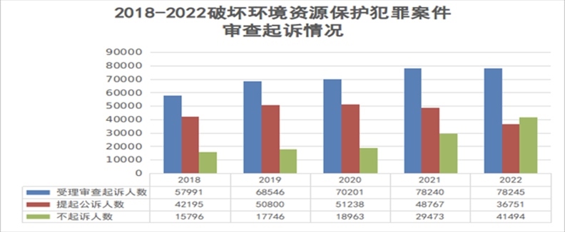 據(jù)介紹,五年來,檢察機關受理審查起訴破壞環(huán)境資源保護犯罪案件209957件353223人,辦理生態(tài)環(huán)境和資源保護領域民事檢察監(jiān)督案件498件、行政檢察監(jiān)督案件62875件、公益訴訟案件394894件,辦案數(shù)量均顯著上升。