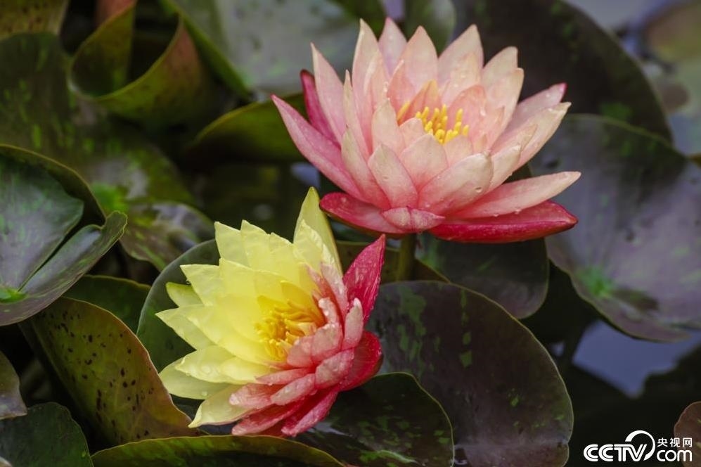 6月7日,昆明大觀(guān)樓,雙色睡蓮“萬(wàn)維莎”綻放。
