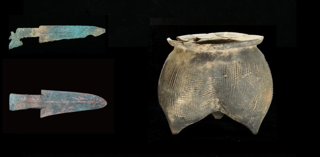 圖為趙窯遺址出土的銅戈與陶鬲。(受訪(fǎng)者供圖)