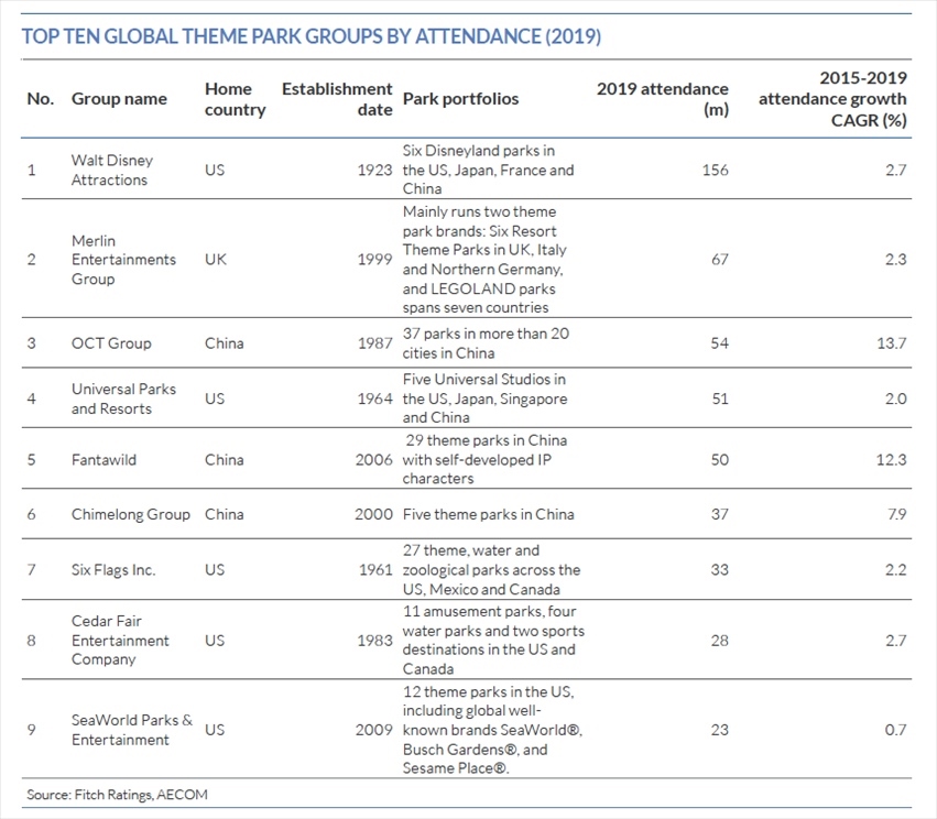 惠譽(yù)評(píng)級(jí)今年4月發(fā)布的主題公園藍(lán)皮書(Fitch China Theme Park Industry Blue Book)則顯示,從2019年全球各大主題公園集團(tuán)旗下樂園的游客量來看,迪士尼公司以2019年全年15.6億人次的游客量穩(wěn)居第一。排名第二的為英國默林集團(tuán)旗下度假區(qū)及樂高樂園的游客量,約6700萬人次,不及迪士尼公司游客量的一半。