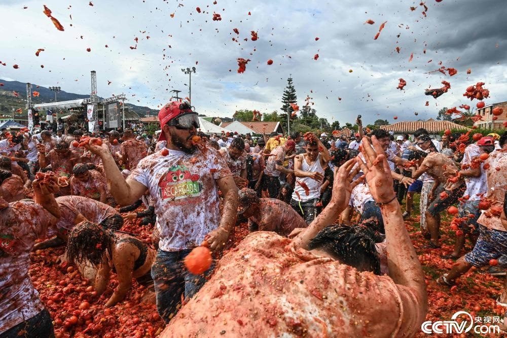 當?shù)貢r間2023年6月11日,哥倫比亞蘇塔馬錢,人們參加一年一度的“西紅柿大戰(zhàn)”。今年的慶典是解除新冠限制以來的第一次。