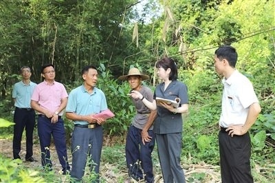 清遠中院法官到巖前村對一起土地承包經(jīng)營權(quán)糾紛案進行實地走訪。