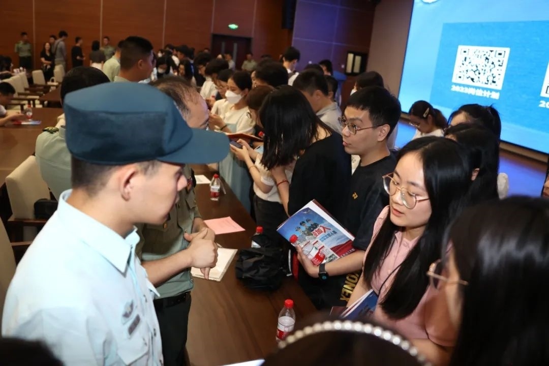 從“政治榮譽高、與國家命運聯(lián)系緊”,到“福利待遇優(yōu)、地域環(huán)境好”,各院校人力資源干事坦率真誠的介紹得到了現(xiàn)場學(xué)生們的肯定?!斑@次來到學(xué)校,就是想告訴大家,當(dāng)前文職人員隊伍還有部分缺額,是青年學(xué)子干事創(chuàng)業(yè)的好機遇,發(fā)展前景十分廣闊……”陸軍政治工作部文職人員局領(lǐng)導(dǎo)的一番話,點燃了高校學(xué)子投身國防的熱情。