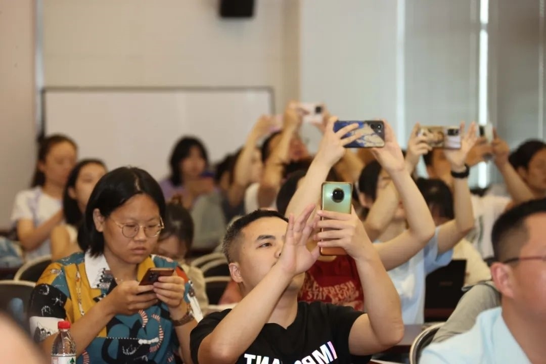 活動中,盡管教室內(nèi)溫度很高,可沒有一名學(xué)生中途離開。一名站在過道處聽講的學(xué)生差點暈倒,工作人員把他扶到空調(diào)處休息了一會,感覺好點后,他又繼續(xù)站在人群中聽講。