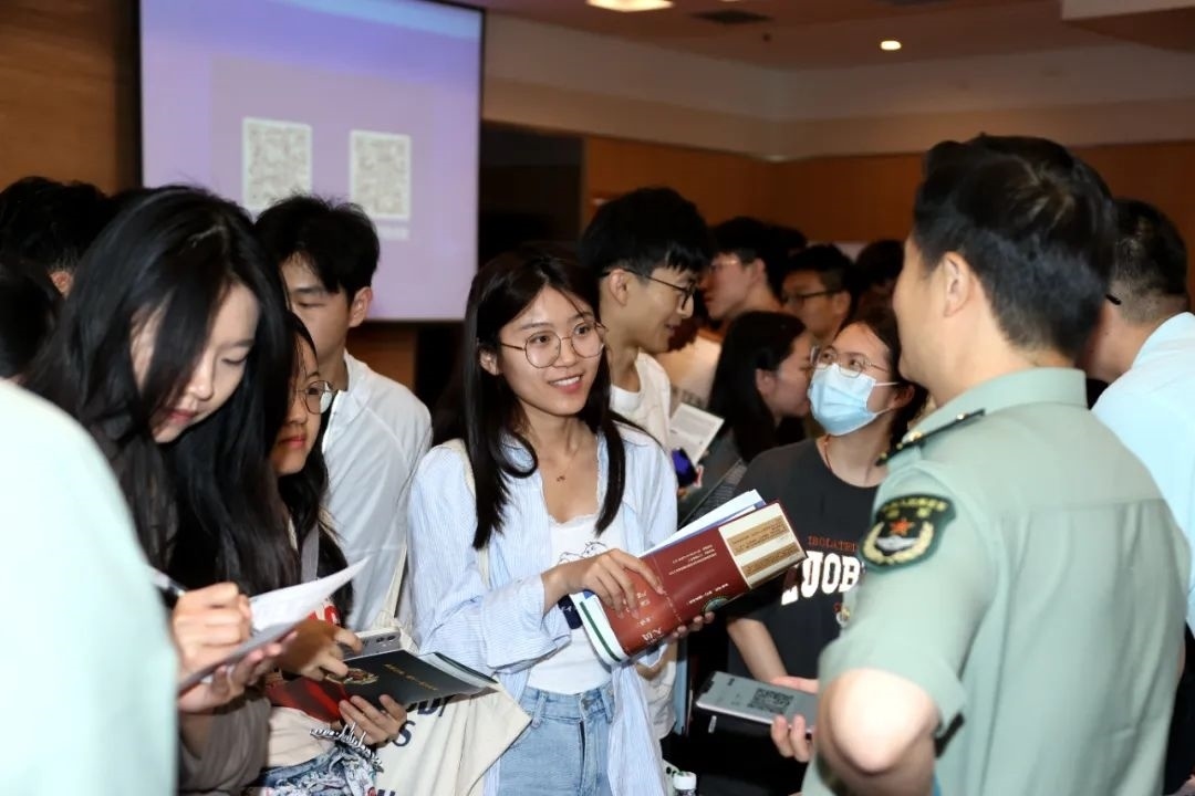 來自陸軍工程大學(xué)政工系的任佳瑩走上講臺,為學(xué)生們現(xiàn)身說法,詳細分享了自己從一名普通文職人員成長為教授的經(jīng)歷,贏得學(xué)生們羨慕的目光。該校物理學(xué)院聲學(xué)專業(yè)的碩士研究生梁詩琪說:“真的很期盼早日成為軍隊文職的一員?!?/p>
