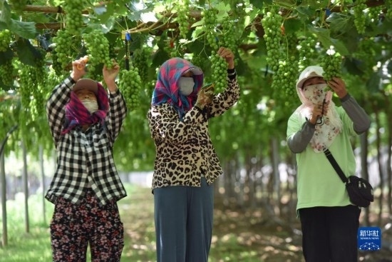 6月21日在河北省懷來縣的豐禾葡萄基地拍攝的“陽光玫瑰”葡萄。