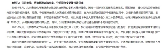 ·北京通報文旅市場行政處罰典型案例,有導游脅迫毆打游客被罰。