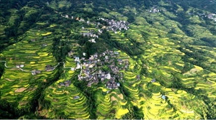 9月10日,無人機航拍的廣西三江侗族自治縣獨峒鎮(zhèn)的高山梯田秋色正濃,美如畫卷。