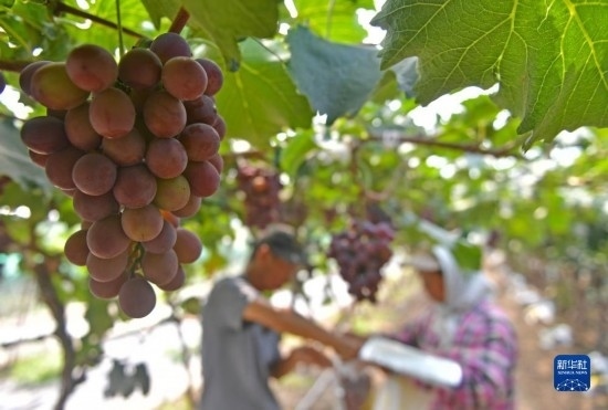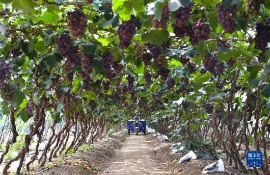 近日,遼寧省燈塔市種植的遼峰葡萄喜迎豐收。燈塔市出產(chǎn)的遼峰葡萄遠近聞名,目前種植面積約1萬畝。當(dāng)?shù)匾研纬善咸雅嘤⒎N植、銷售、倉儲、加工相關(guān)產(chǎn)業(yè)鏈,葡萄是當(dāng)?shù)剞r(nóng)民致富增收的特色產(chǎn)業(yè)。