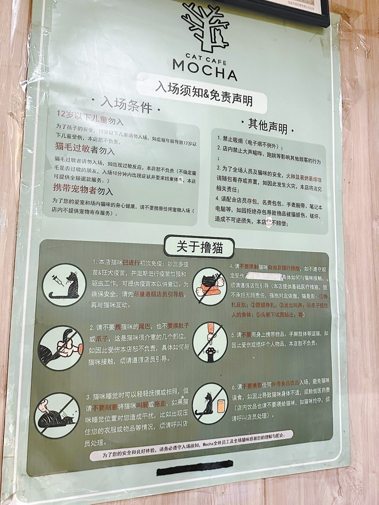 位于方家胡同的一家貓咪咖啡店,客人們興趣盎然地和貓咪玩耍,其中少有兒童的身影。店內(nèi)貼的“入場須知”中提到,“為了孩子的安全,12歲以下兒童請勿入場,如虛報年齡導致12歲以下兒童受傷,本店恕不負責?!?/p>