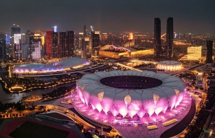 比如充滿想象的場館設(shè)計。錢塘江畔的“大蓮花”,其建筑體態(tài)源于錢塘江水的動態(tài),給人以震撼的同時,也“盛放”出浙江的文化底蘊和藝術(shù)魅力;“水幔”環(huán)繞的手球館,外觀別具一格,“條條水幔”垂落很是吸睛;以“杭州傘”為造型的曲棍球場,則詮釋出江南古典美學(xué)十足的浪漫韻味。