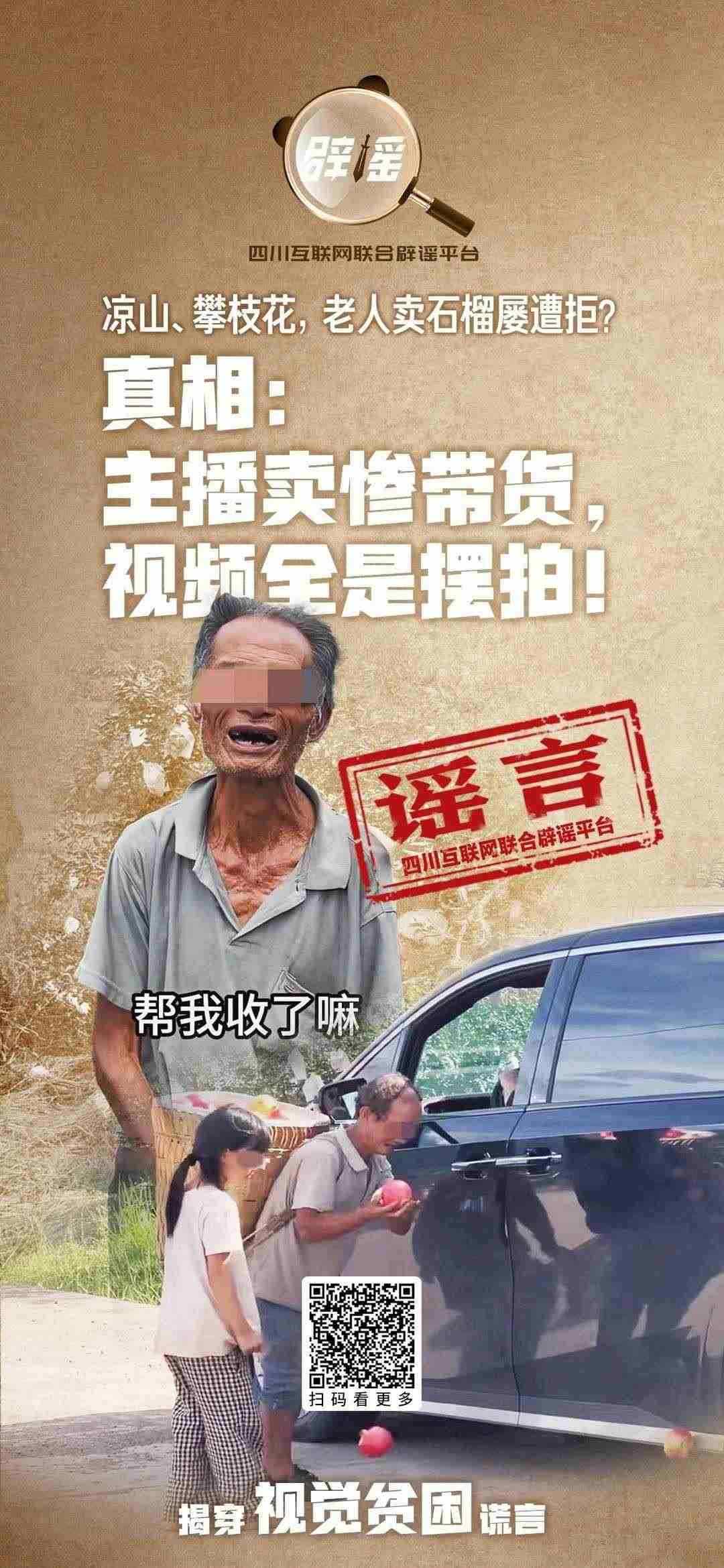 連日來(lái),四川互聯(lián)網(wǎng)聯(lián)合辟謠平臺(tái)、封面新聞?dòng)浾咦咴L了涼山州會(huì)理市、攀枝花市仁和區(qū)的石榴產(chǎn)區(qū),輾轉(zhuǎn)尋找到了上述視頻中的多名老人后發(fā)現(xiàn),這些熱門視頻的背后,實(shí)則為“賣慘帶貨”的營(yíng)銷套路。