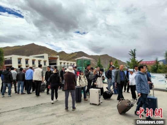 9月23日,乘坐高原復興號動車組列車的乘客抵達拉薩火車站。江飛波 攝