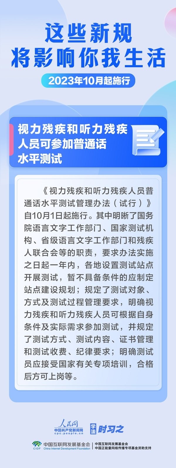 預(yù)防和制止假冒國企央企等違法行為;加強校外培訓(xùn)監(jiān)管;視力殘疾和聽力殘疾人員可參加普通話水平測試……10月,這些新規(guī)施行,將影響你我生活。