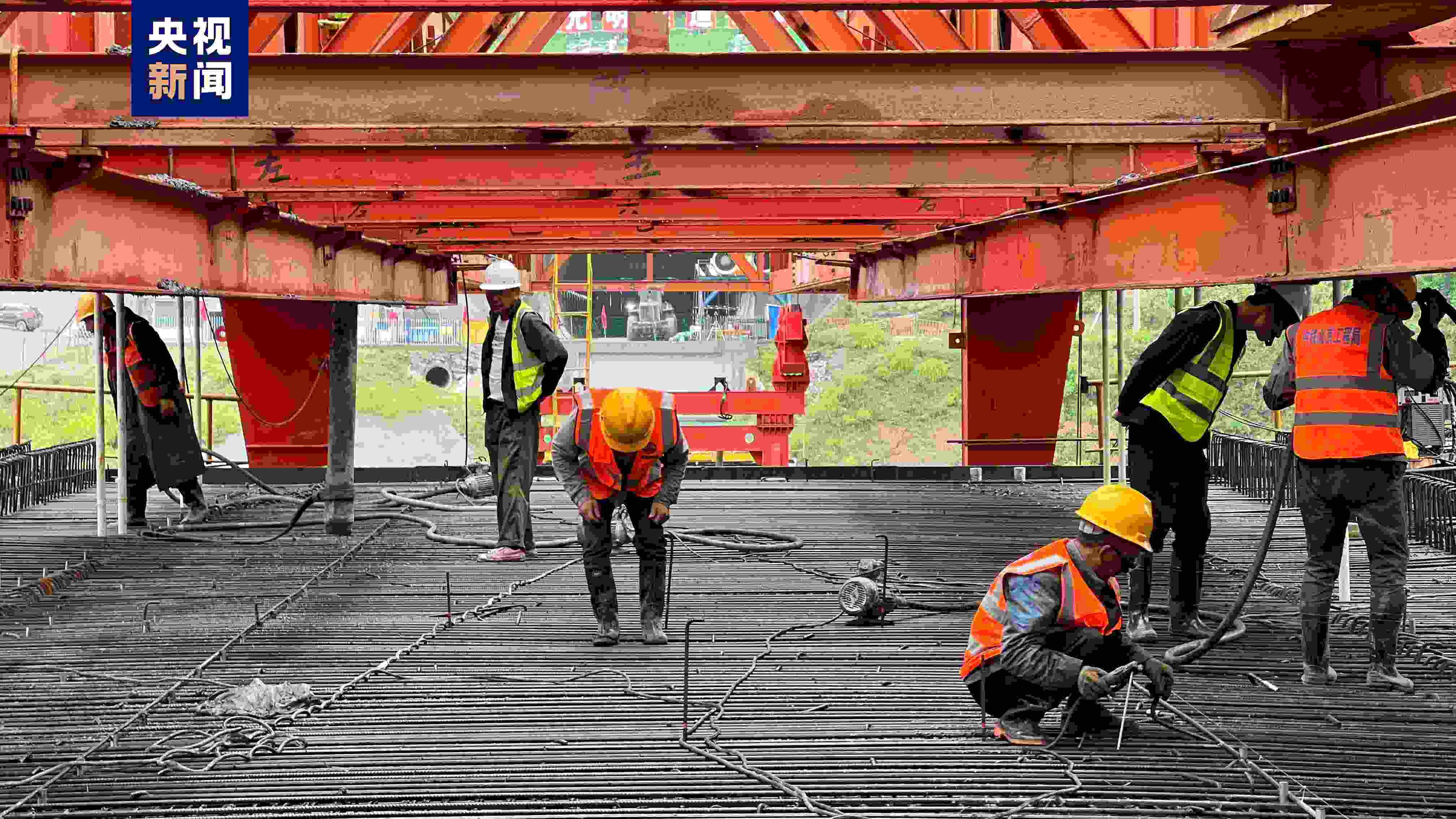 河水壩大橋位于重慶市開州區(qū)巫山鎮(zhèn)河龍村北側(cè),橋址跨越河谷地形起伏較大,植被茂密,水面寬約12米,橋址地層巖性主要為軟塑狀粉質(zhì)黏土,層厚約2.1米,具有承載力低、壓縮性高、厚度分布不均等特點(diǎn),地質(zhì)條件較為復(fù)雜。本次澆筑成功的是河水壩大橋首孔現(xiàn)澆梁,經(jīng)過施工人員連續(xù)10小時(shí)的奮戰(zhàn),孔長32m,高3.03m,重約900t的移動(dòng)模架現(xiàn)澆梁順利完成混凝土澆筑。據(jù)中鐵北京工程局成達(dá)萬高鐵項(xiàng)目一工區(qū)經(jīng)理烏小平介紹:“河水壩大橋首孔現(xiàn)澆梁采用移動(dòng)模架現(xiàn)澆法施工,制梁具有機(jī)械化程度高、靈活性強(qiáng)、節(jié)約人力成本、施工周期短、使用輔助設(shè)備少、重復(fù)利用性高等特點(diǎn),既保證了工程質(zhì)量,又能加快施工進(jìn)度,具有良好的經(jīng)濟(jì)效益。”移動(dòng)模架現(xiàn)澆法施工有效解決了控制性工程長大隧道架梁機(jī)無法及時(shí)架梁的問題,縮短了整體工期,確保項(xiàng)目按期順利推進(jìn)。