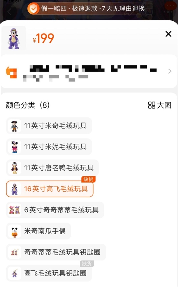 一位不愿意透露姓名的網(wǎng)友告訴紅星新聞,自己9月26日去上海迪士尼樂園,希望能購買“紫龍高飛”商品,然而大約中午就已斷貨?!肮ぷ魅藛T告訴我們,沒有貨了,不用排隊(duì)了。就是因?yàn)檫@樣,我后來才高價買了商品?!?/p>