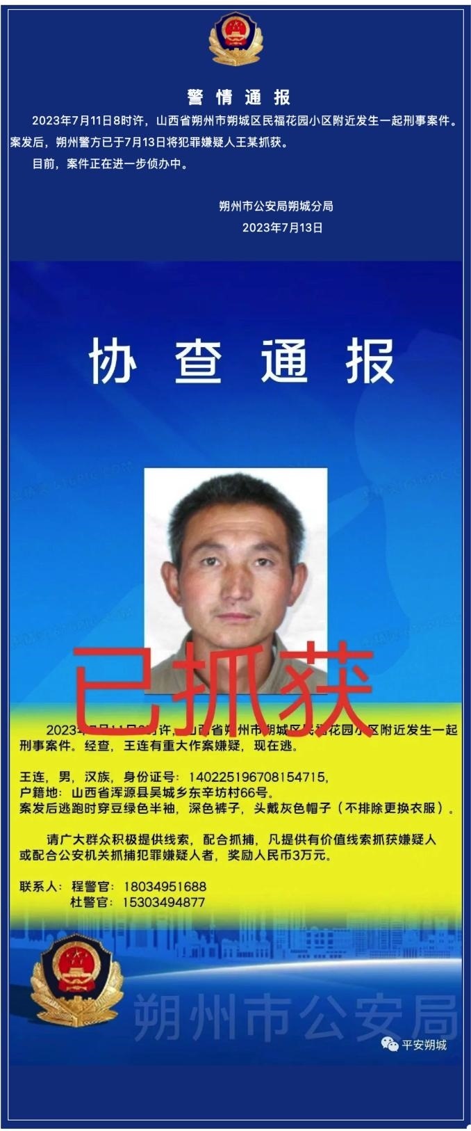 ·山西朔城警方通報:殺害隊長的環(huán)衛(wèi)工已被捕。