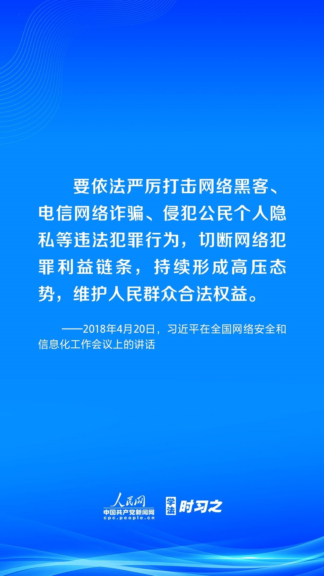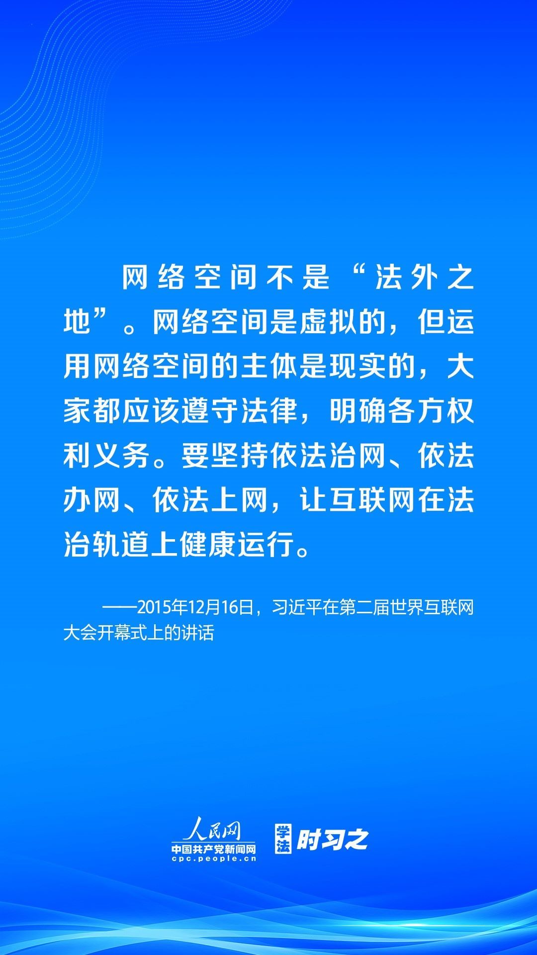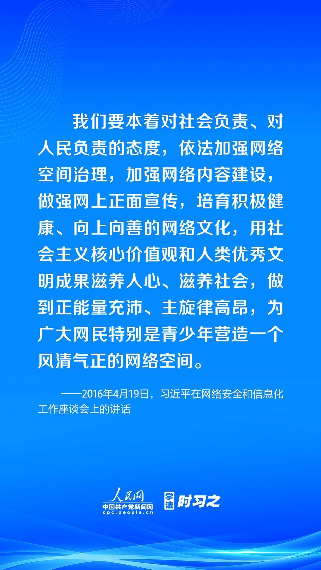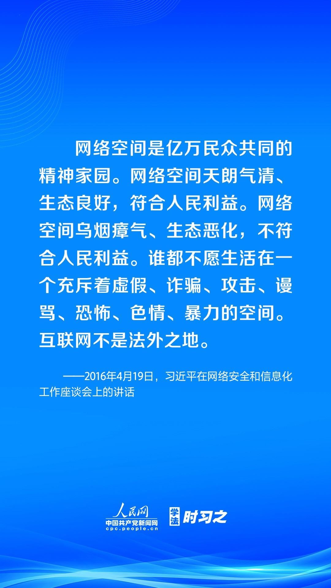 營造風(fēng)清氣正的網(wǎng)絡(luò)空間,離不開法治手段的保障。黨的十八大以來,習(xí)近平總書記高度重視網(wǎng)絡(luò)法治工作,強(qiáng)調(diào)要堅持依法治網(wǎng)、依法辦網(wǎng)、依法上網(wǎng),讓互聯(lián)網(wǎng)在法治軌道上健康運(yùn)行。