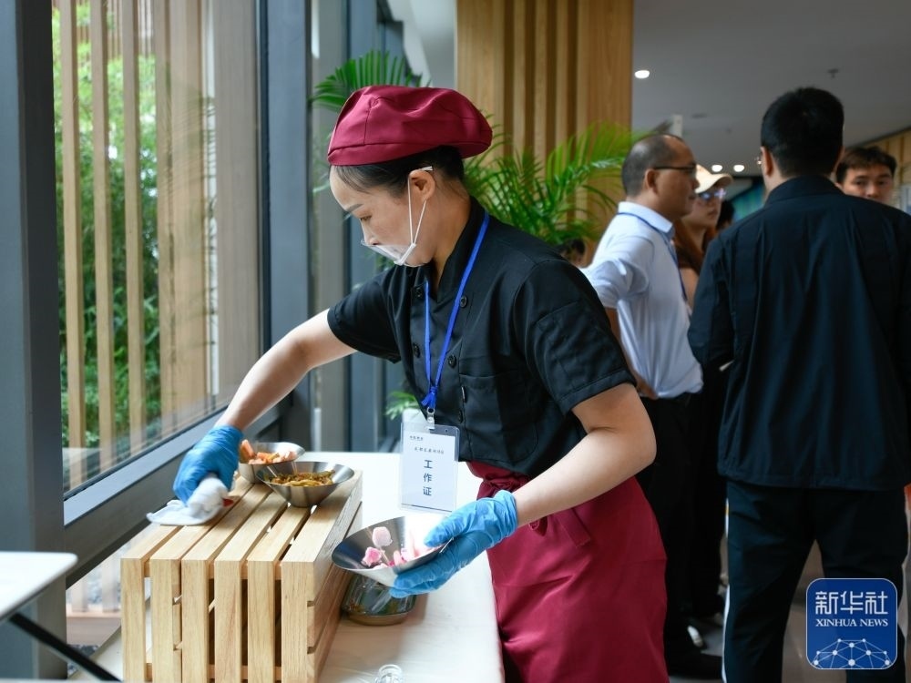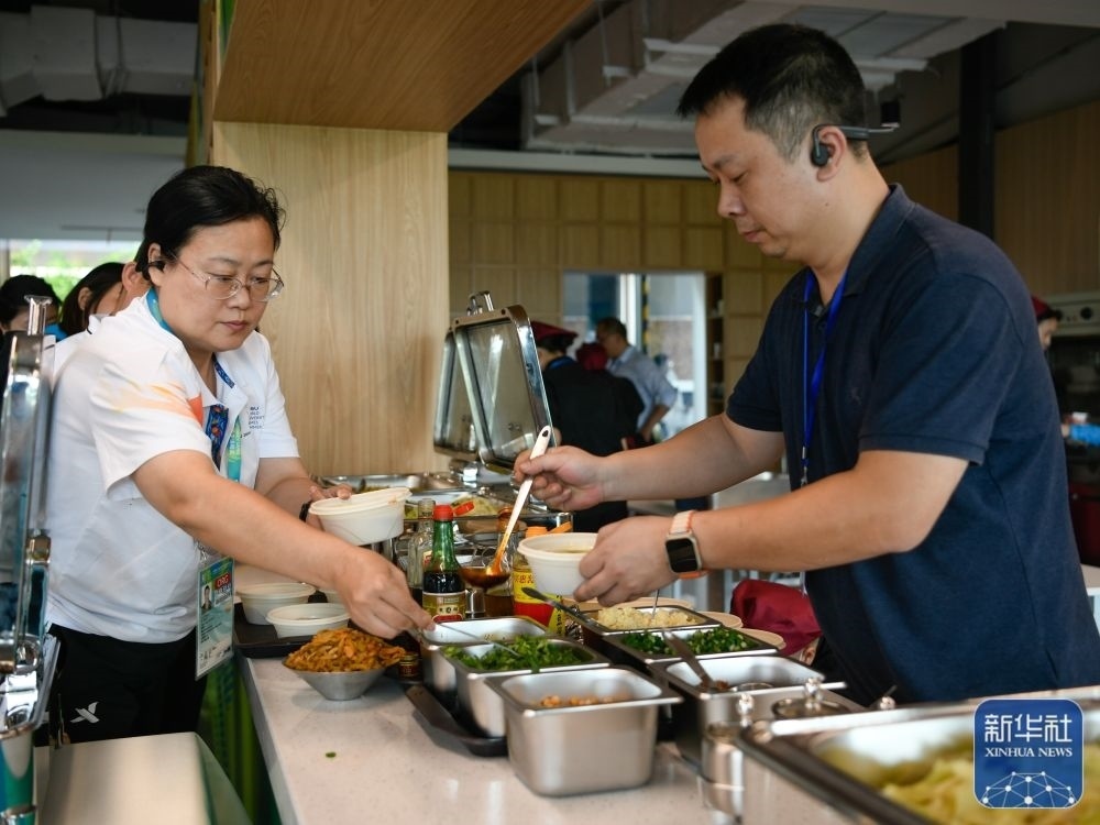 ↑這是7月14日拍攝的成都大運會主媒體中心媒體餐廳內(nèi)菜品。新華社記者 胥冰潔 攝