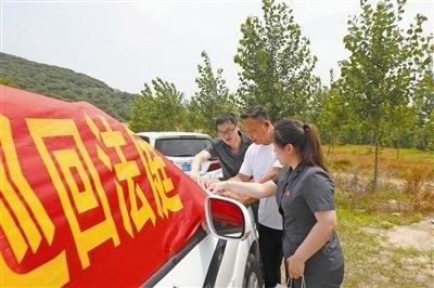 “現(xiàn)在開(kāi)庭!”隨著審判長(zhǎng)的一聲令下,這場(chǎng)以青山為背景、警車(chē)為審判臺(tái)、黃土地為審判場(chǎng)的“別樣”庭審正式落槌!近日,山東省莒南縣人民法院環(huán)境資源審判庭的法官冒著酷暑來(lái)到坊前鎮(zhèn)李家崖村,對(duì)被告人李某非法占用農(nóng)用地刑事附帶民事公益訴訟案件進(jìn)行開(kāi)庭宣判,并現(xiàn)場(chǎng)監(jiān)督被告人對(duì)破壞的土地進(jìn)行徹底修復(fù)。