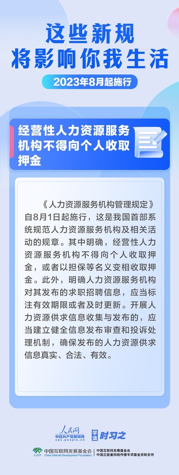 促進生成式人工智能健康發(fā)展;擴大適用個稅優(yōu)惠政策的商業(yè)健康保險產(chǎn)品范圍;明確經(jīng)營性人力資源服務(wù)機構(gòu)不得向個人收取押金……8月,這些新規(guī)施行,將影響你我生活。