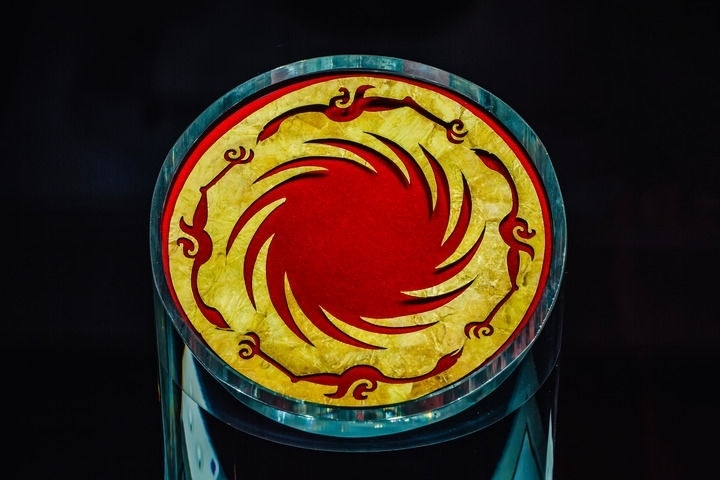 一只“太陽神鳥”的圖案出現(xiàn)在場館中央?yún)^(qū)域