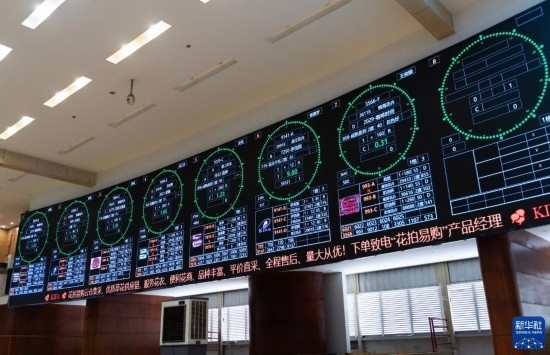 這是昆明國(guó)際花卉拍賣交易中心拍賣大廳的大屏上實(shí)時(shí)顯示的鮮花信息(7月13日攝)。新華社記者 陳欣波 攝