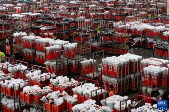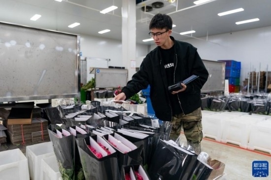 每天,由花農(nóng)采摘的鮮花進(jìn)入分揀包裝車間,預(yù)冷、分級(jí)、包裝、入庫(kù)冷藏等工作井然有序地開展。經(jīng)過(guò)采后處理的鮮花一部分通過(guò)園區(qū)自有物流直接向客戶發(fā)貨,一部分則由專門的鮮花運(yùn)輸車運(yùn)往昆明國(guó)際花卉拍賣交易中心,開啟拍賣流程。
